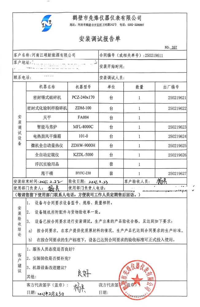 河南濟(jì)源客戶(hù)馬弗爐、量熱儀等調(diào)試完成